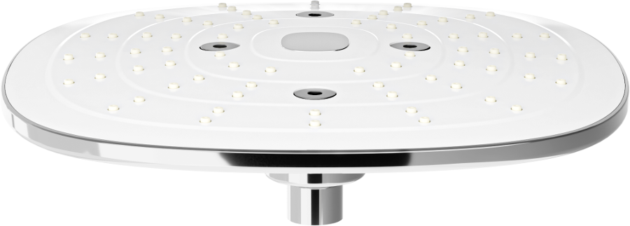 Dažďová sprcha má gumové trysky, ktoré zabraňujú usadzovaniu vodného kameňa