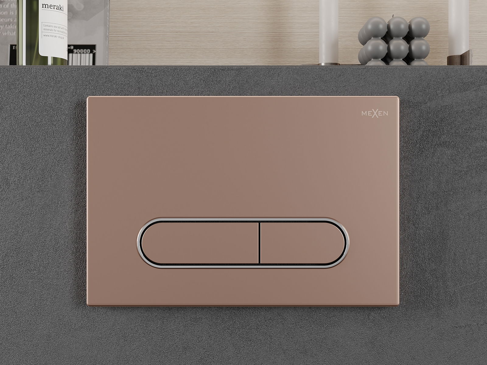 Tlačidlo sa zmestí na rám z Mexen Fenix Slim Series, v ktorej je možné nainštalovať spredu. Populárne a praktické riešenie, najmä v kúpeľniach, kde je prístup k gombíku spredu pohodlnejší.