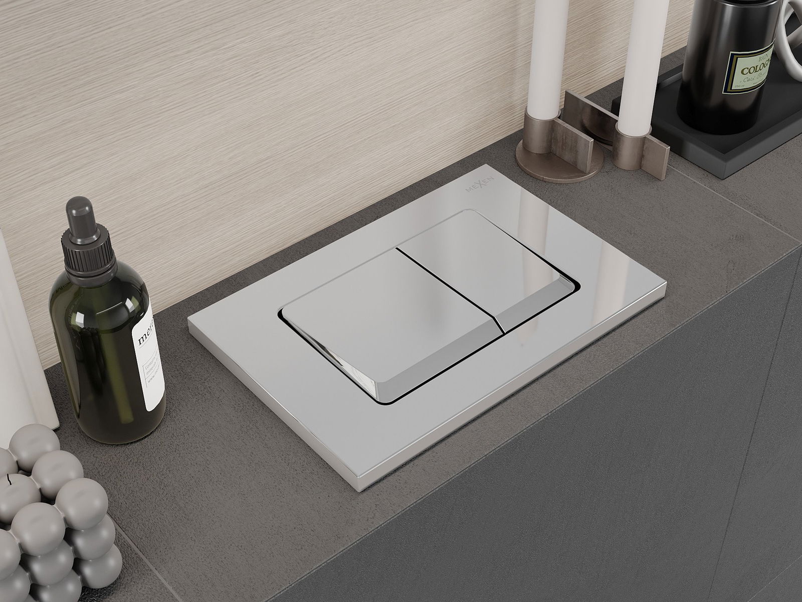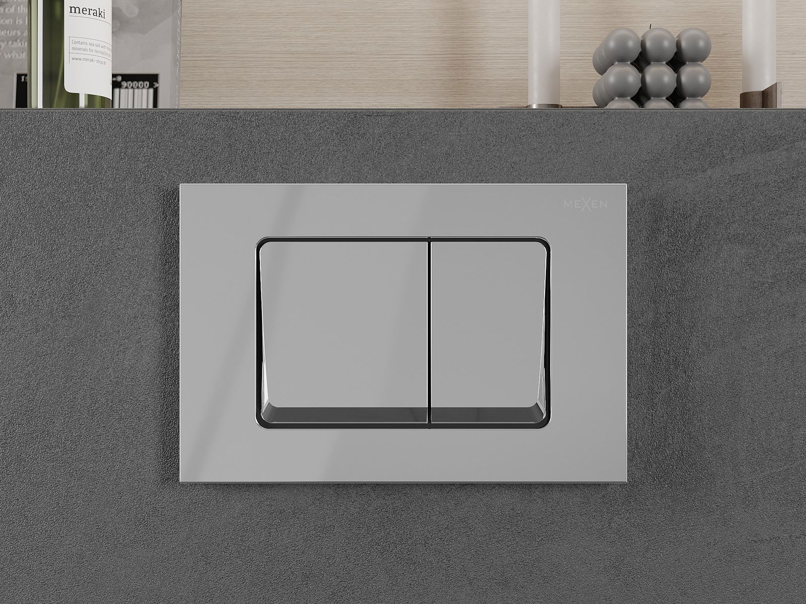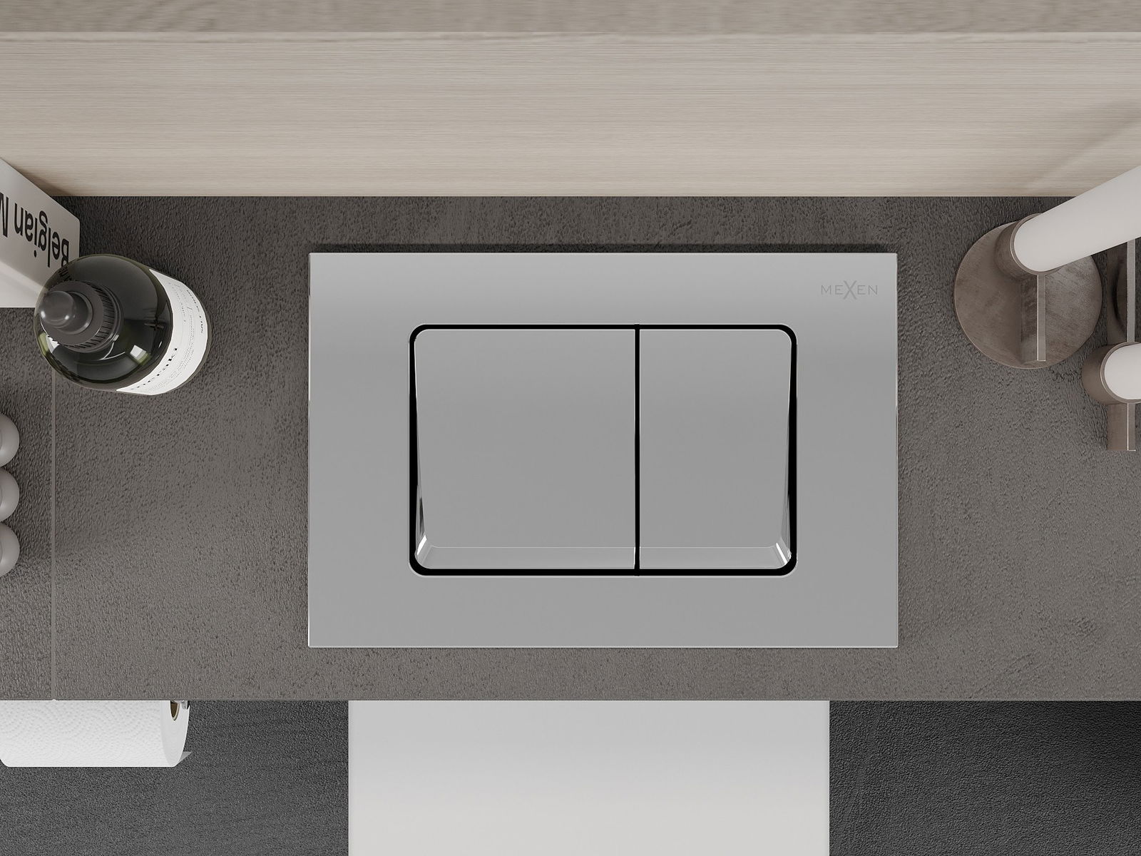 Vyplachovacie tlačidlo sa zmestí na snímky zo série Mexen Fenix XS, ktorá umožňuje nainštalovanie spredu aj z hornej časti rámu. Vďaka tomu je porovnávanie preferovanej montážnej metódy k vašim potrebám ešte jednoduchšie.