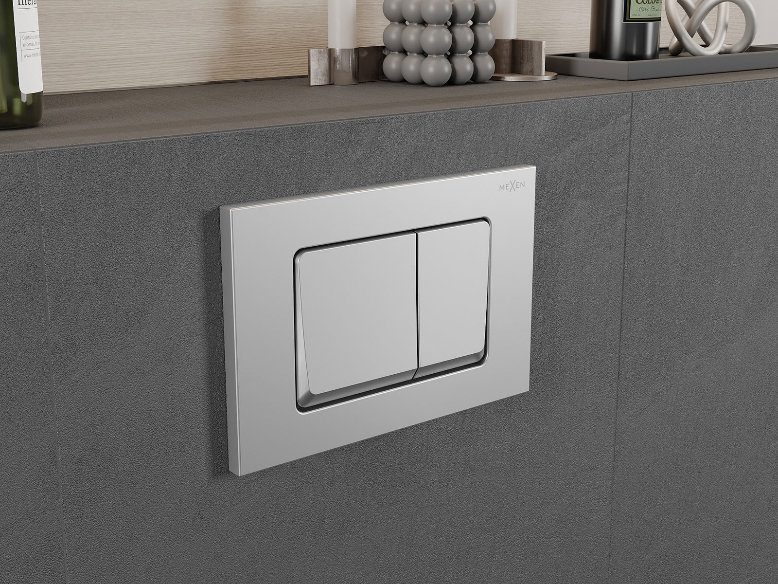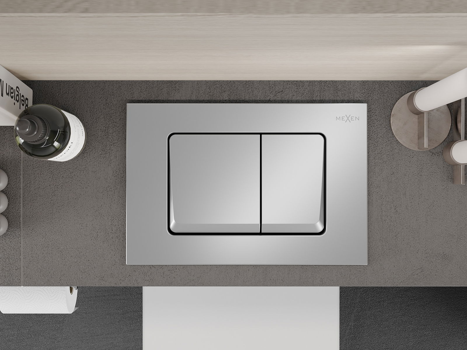 Vyplachovacie tlačidlo sa zmestí na snímky zo série Mexen Fenix XS, ktorá umožňuje nainštalovanie spredu aj z hornej časti rámu. Vďaka tomu je porovnávanie preferovanej montážnej metódy k vašim potrebám ešte jednoduchšie.