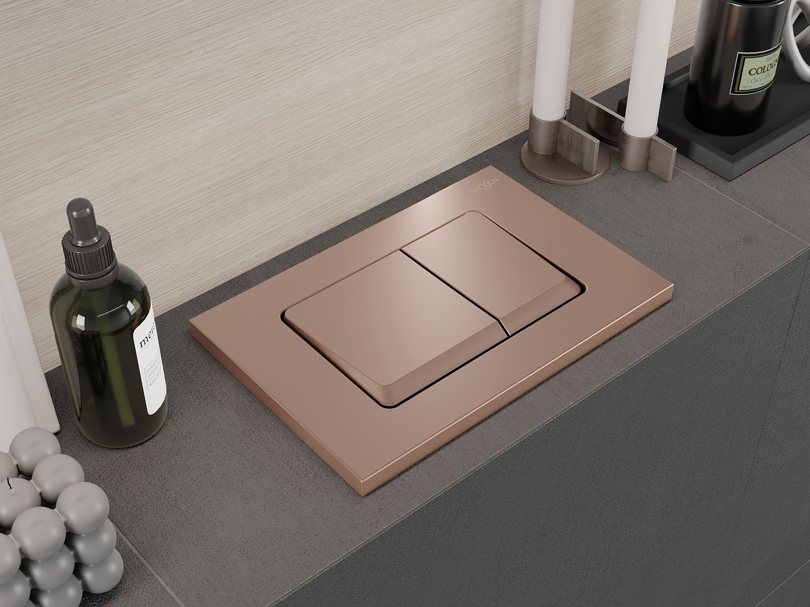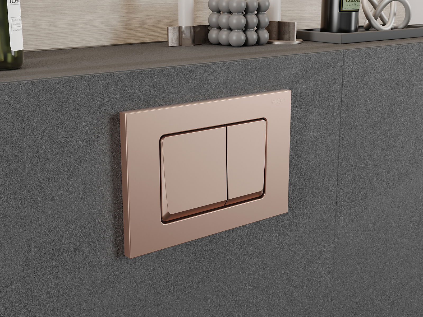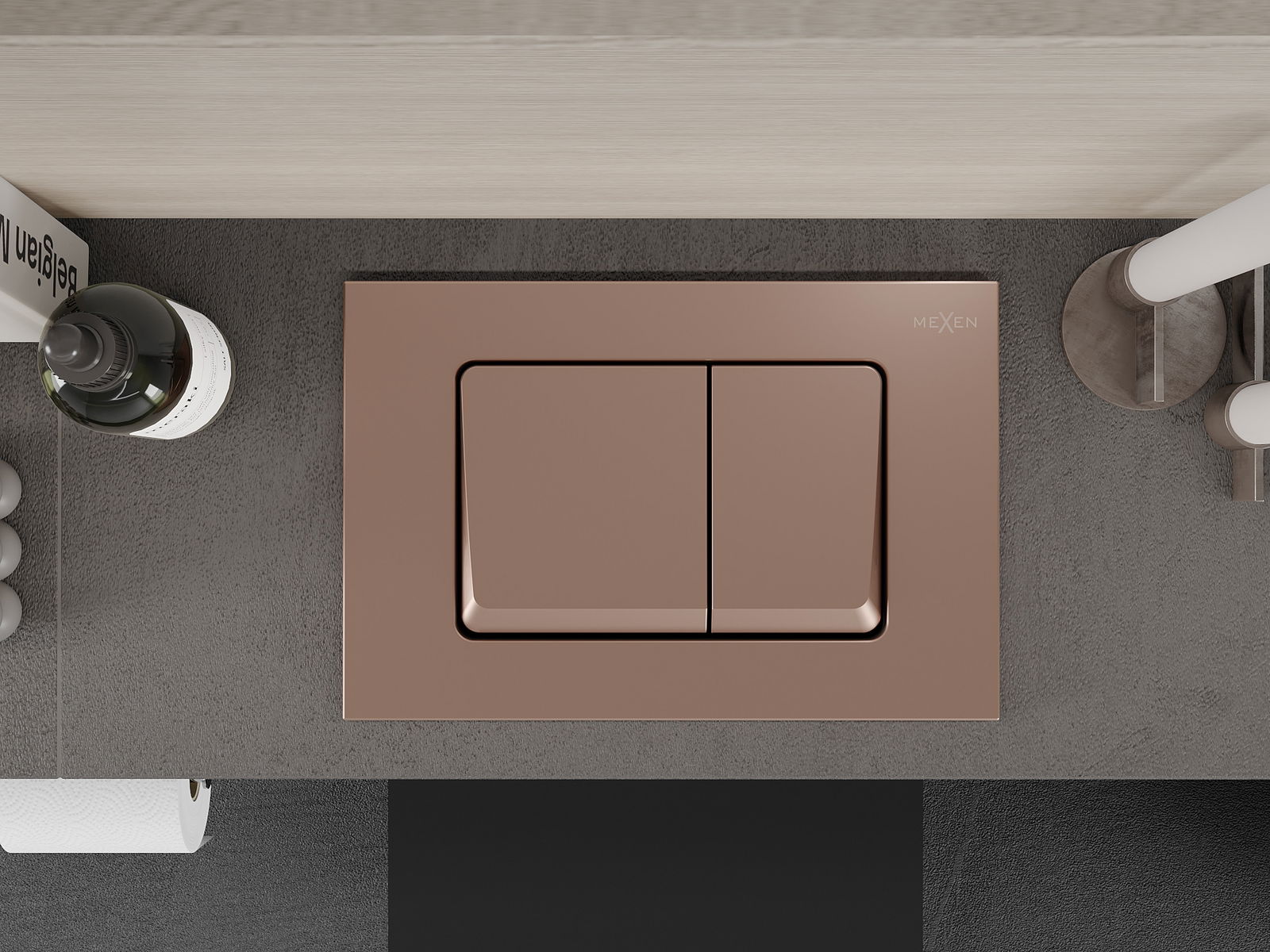 Vyplachovacie tlačidlo sa zmestí na snímky zo série Mexen Fenix XS, ktorá umožňuje nainštalovanie spredu aj z hornej časti rámu. Vďaka tomu je porovnávanie preferovanej montážnej metódy k vašim potrebám ešte jednoduchšie.