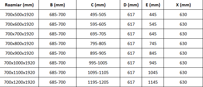 Veľkosť: 70x90 cm (dvere 70 cm, stena 90 cm)
