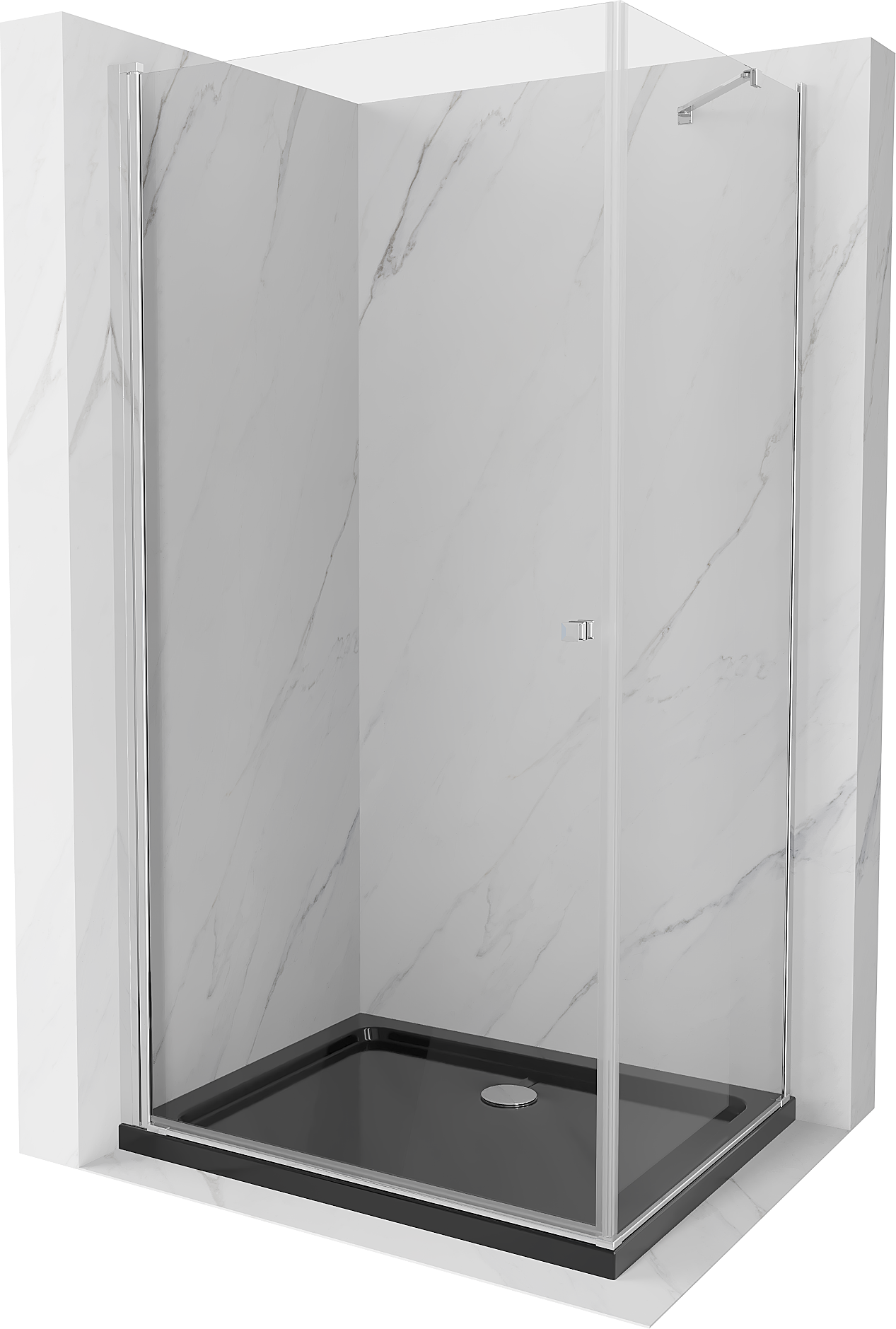 Mexen Pretoria sprchovací kút otvárací 70 x 90 cm, transparentný, chróm + vanička Flat, čierna - 852-070-090-01-00-4070