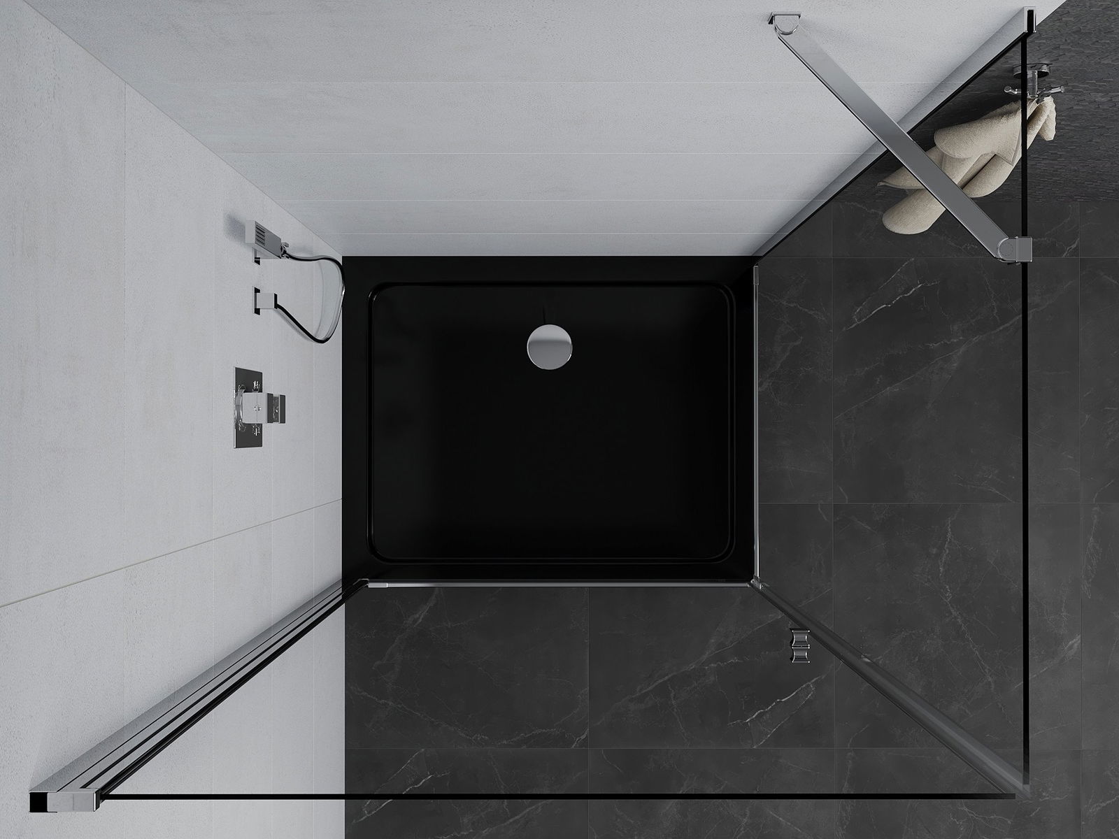 Mexen Pretoria sprchová kabína s otváracími dverami 90 x 70 cm, transparentná, chróm + sprchová vanička Flat, čierna - 852-090-?
