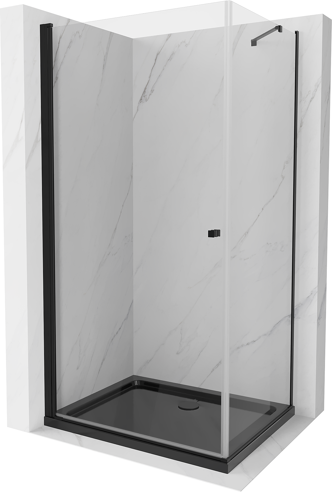 Mexen Pretoria sprchový kút otočný 100 x 70 cm, priehľadný, čierny + sprchová vanička Flat, čierna - 852-100-070-70-00-4070B