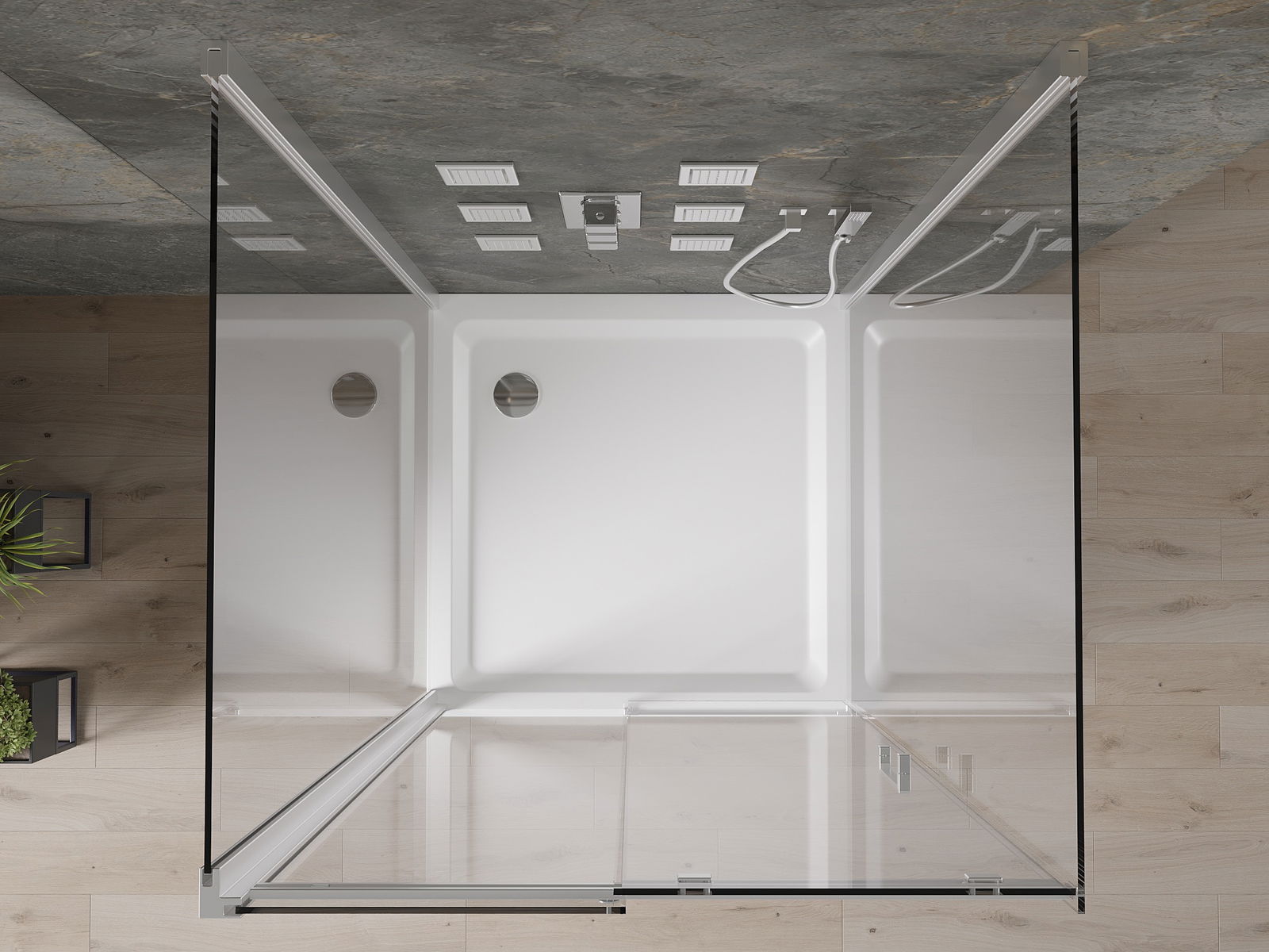 Posuvné dvere sa pohybujú po špeciálnych koľajniciach a nevyžadujú dodatočný priestor na otvorenie, preto sú ideálne pre menšie kúpeľne. Vďaka dvojitým kolieskam s kovovým telom je ich pohyb plynulý.