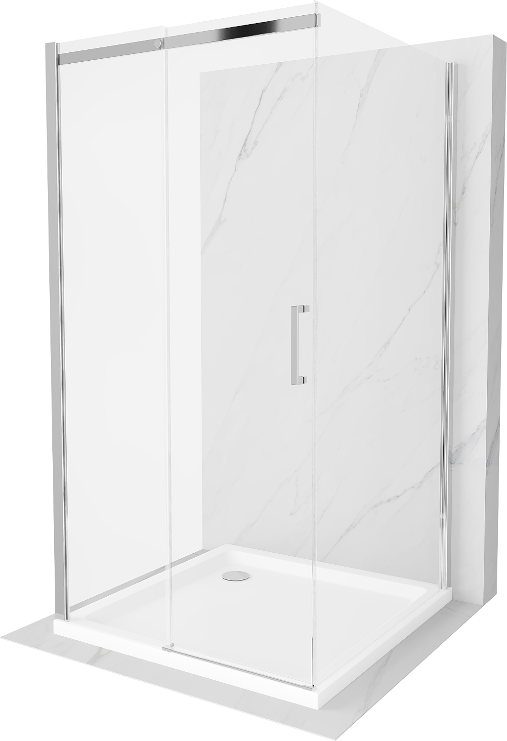 Mexen Omega-3S sprchovací kút 3-stenný, posuvný 100x100 cm, priehľadný, chróm + vanička Flat - 825-100-100-01-00-3s-4010