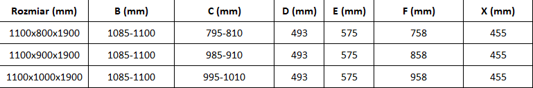 Veľkosť: 110x80 cm (dvere 110 cm, steny 80 cm)