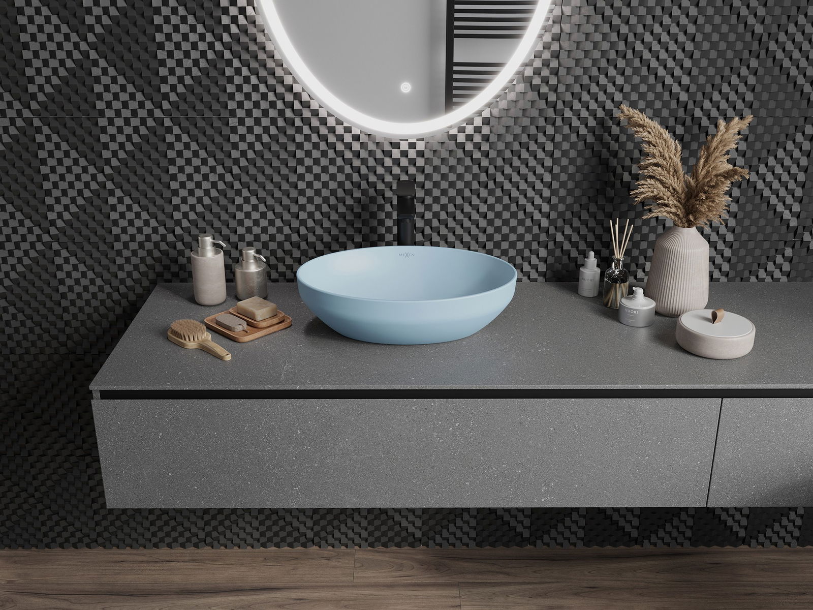 Matný povrch keramiky dokonale zvýrazňuje charakter farby produktu, dodávajúc mu jedinečný a výrazný vzhľad. Jemná štruktúra matnej keramiky prináša do kúpeľne eleganciu, vytvárajúc estetický priestor.