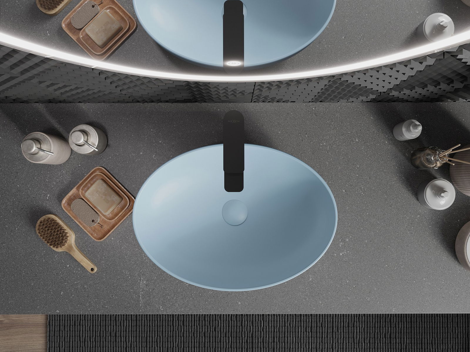 Mexen Cornelia je elegantné umývadlo na dosku s rozmermi 50 x 37 cm, vynikajúce svojím jedinečným modrým, matným povrchom. Vyrábané z vysoko kvalitnej sanitárnej keramiky, nielenže poskytuje štýlový vzhľad, ale aj trvácnosť a ľahkú údržbu. Oválny tvar a absencia otvorov na batérie a prepad zdôrazňujú moderný dizajn. Ideálne do kúpeľní, kombinuje funkčnosť s estetikou, vytvárajúc nezabudnuteľný priestor pre užívateľov.