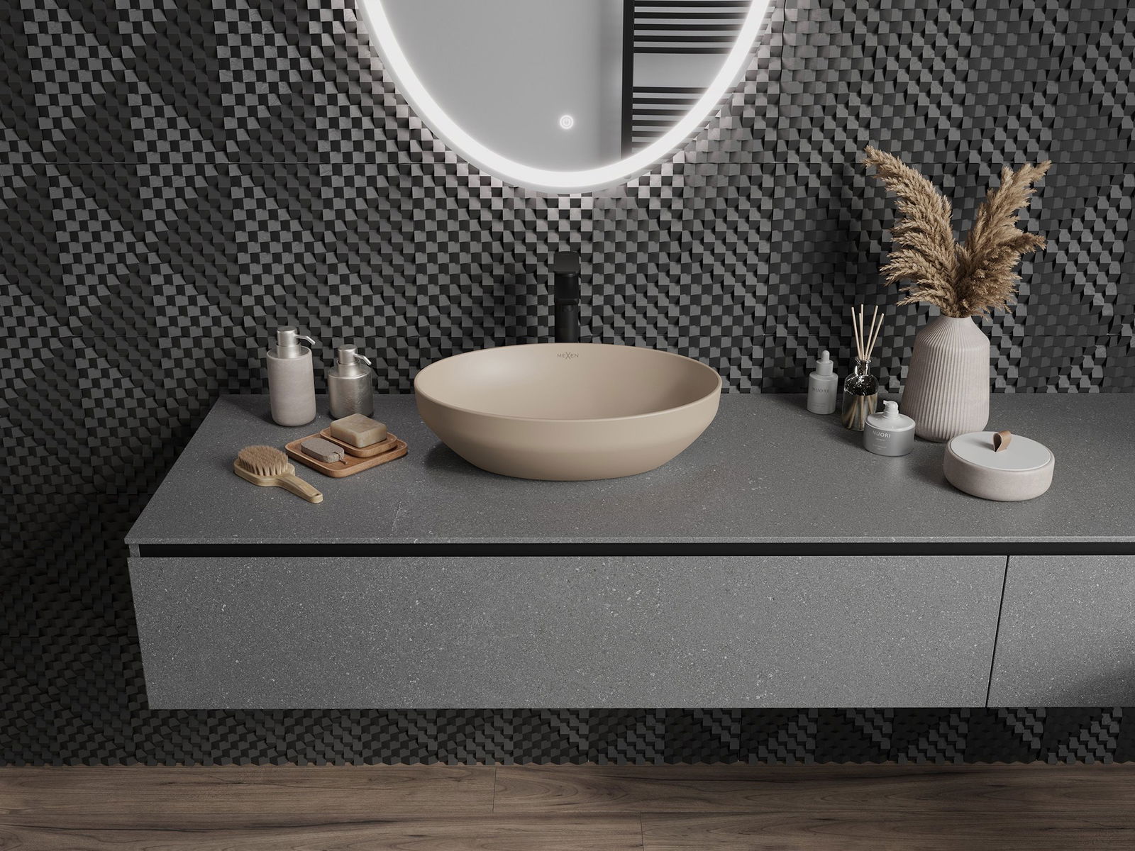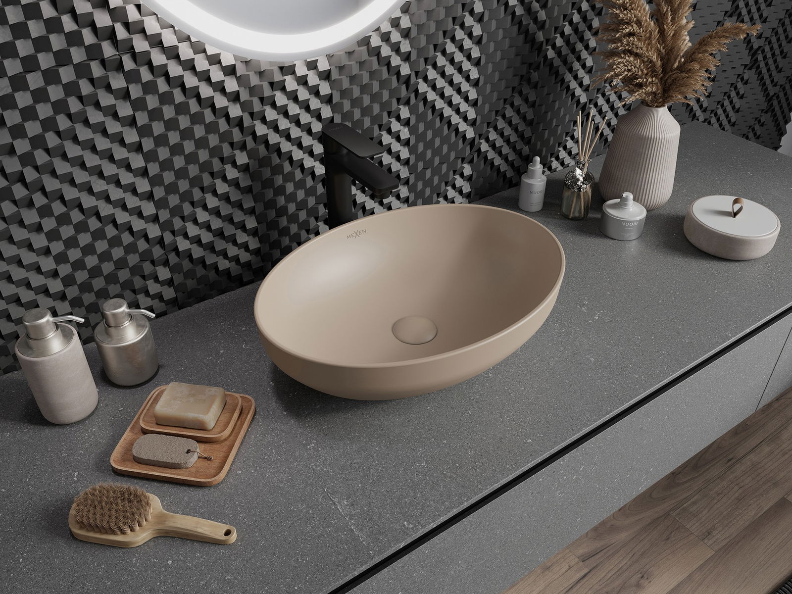 Matný povrch keramiky dokonale zdôrazňuje povahu farby produktu, čo jej dáva jedinečný a výrazný povrch. Jemná štruktúra matnej keramiky predstavuje eleganciu do kúpeľne a vytvára estetický priestor.