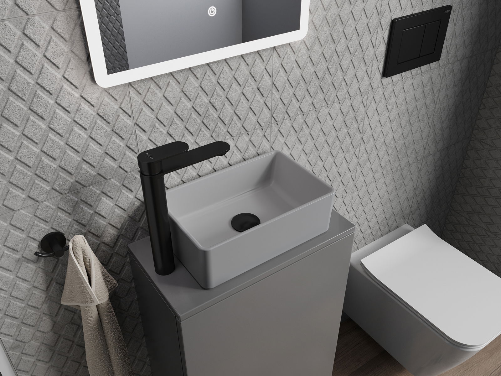 Matný povrch keramiky dokonale zdôrazňuje povahu farby produktu, čo jej dáva jedinečný a výrazný povrch. Jemná štruktúra matnej keramiky predstavuje eleganciu do kúpeľne a vytvára estetický priestor.