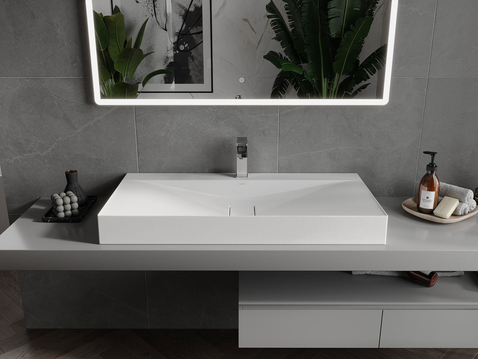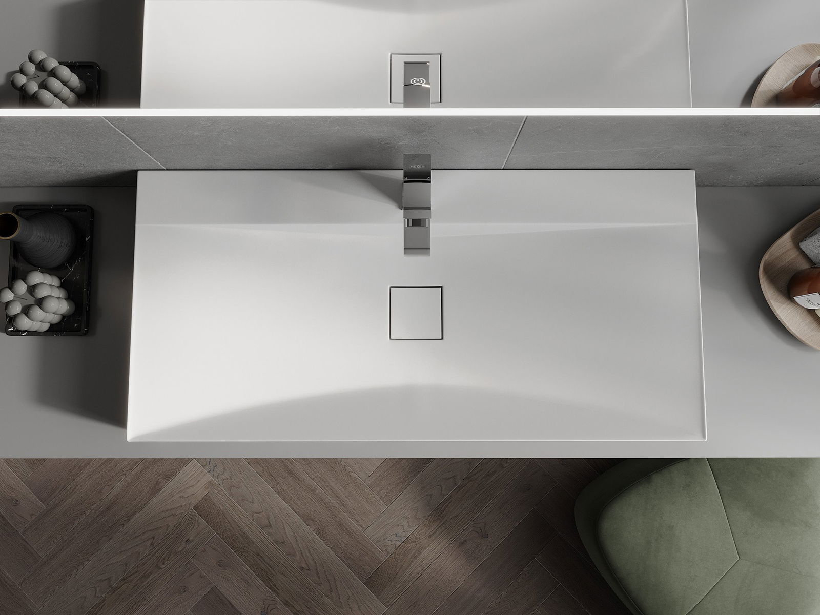 Dozkok má otvor, v ktorom môžeme pripevniť batériu. To šetrí cenný priestor v kúpeľni a zdôrazňuje jeho estetiku. Toto riešenie vám tiež umožňuje ľahko udržiavať čisté okolo umývadla.