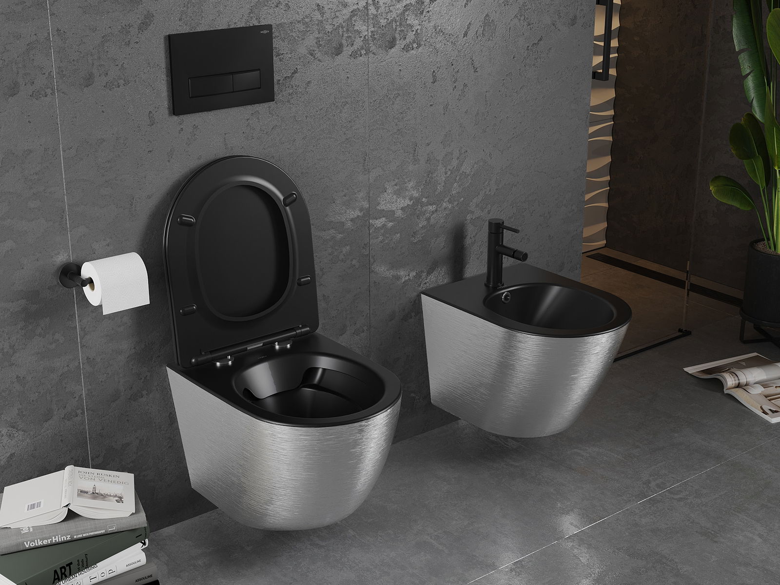 Sada obsahuje tuhé kovové pánty, ktoré zaručujú stabilné upevnenie dosky na toaletnú misku. Toto je praktické riešenie, ktoré vám umožňuje ľahko prispôsobiť dosku tvaru a rozmerom záchodu, čím sa zabezpečuje pohodlie použitia.