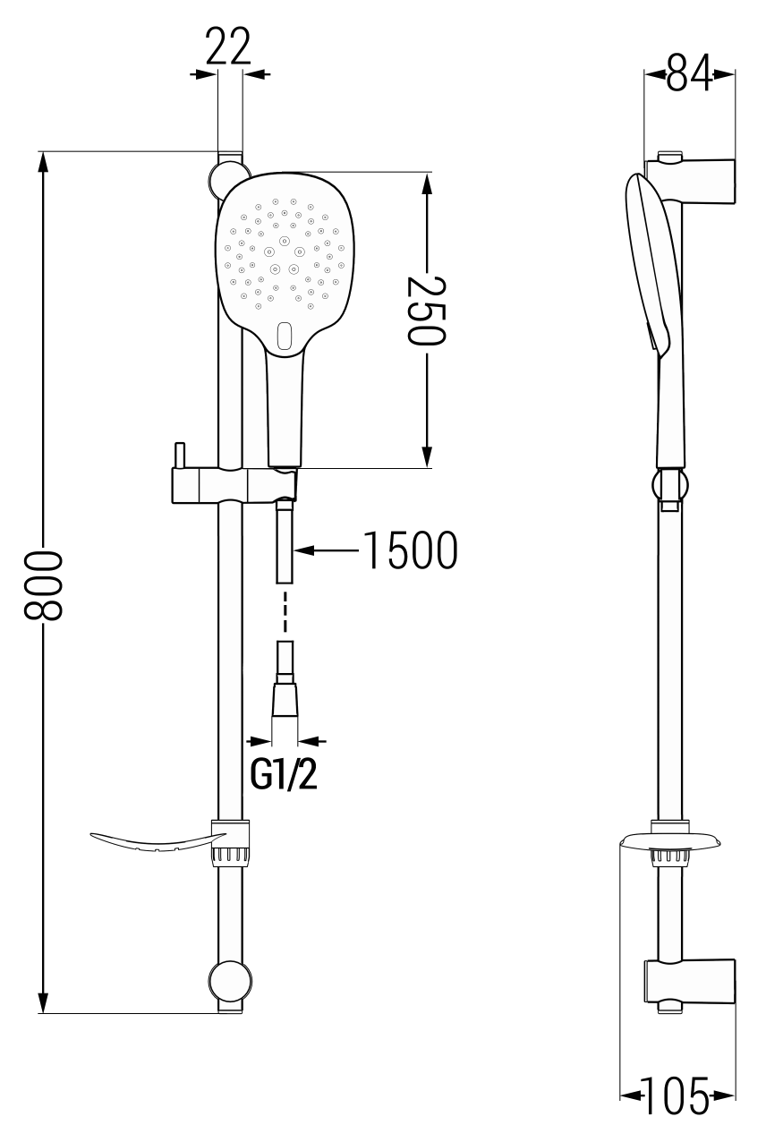 Posuvný držiak na sprchovú hlavicu