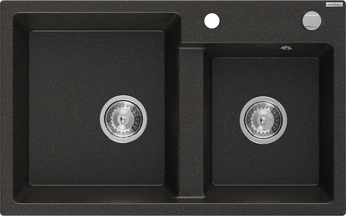 Mexen Tomas žulový dvojkomorový drez 800 x 500 mm, čierno/zlatý metalik, sifón chróm - 6516802000-75