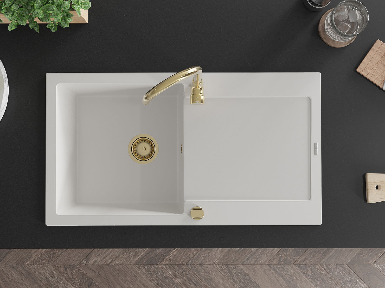 Povrch umývadla je odolný voči škvrnám a sfarbeniu, vďaka čomu sa ľahko čistí a zachováva si svoju farbu po dlhú dobu. Estetický a prakticky dopĺňajúci každú kuchyňu.