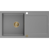 Mexen Leo žulový drez s 1 komorou a odkladacou plochou 900 x 500 mm, čierny s bodkami, sifón zlatý - 6501901010-76-G