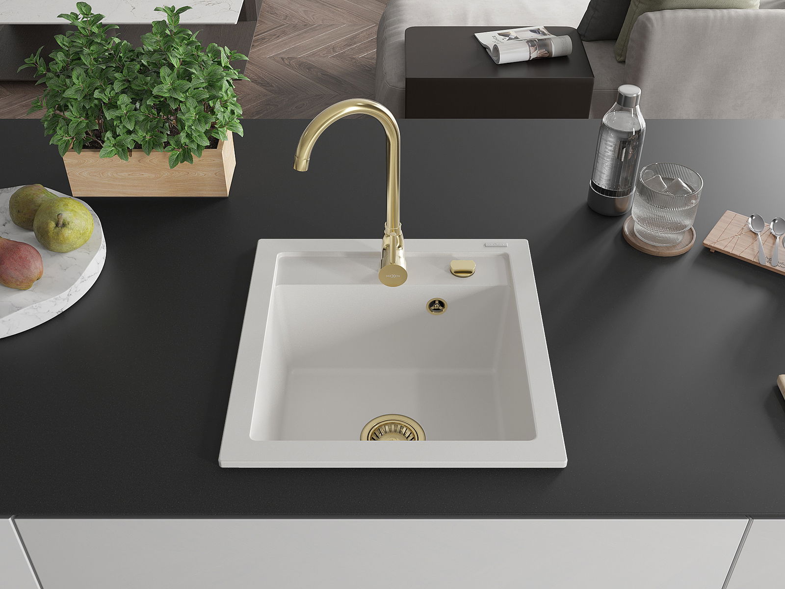 Povrch umývadla je odolný voči škvrnám a sfarbeniu, vďaka čomu sa ľahko čistí a zachováva si svoju farbu po dlhú dobu. Estetický a prakticky dopĺňajúci každú kuchyňu.