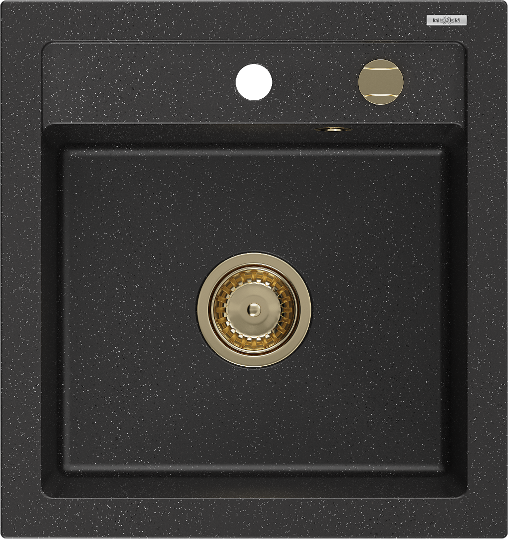 Mexen Vito žulový drez s 1 komorou 520 x 490 mm, čierny/strieborný metalik, sifón zlatý - 6503521000-73-G