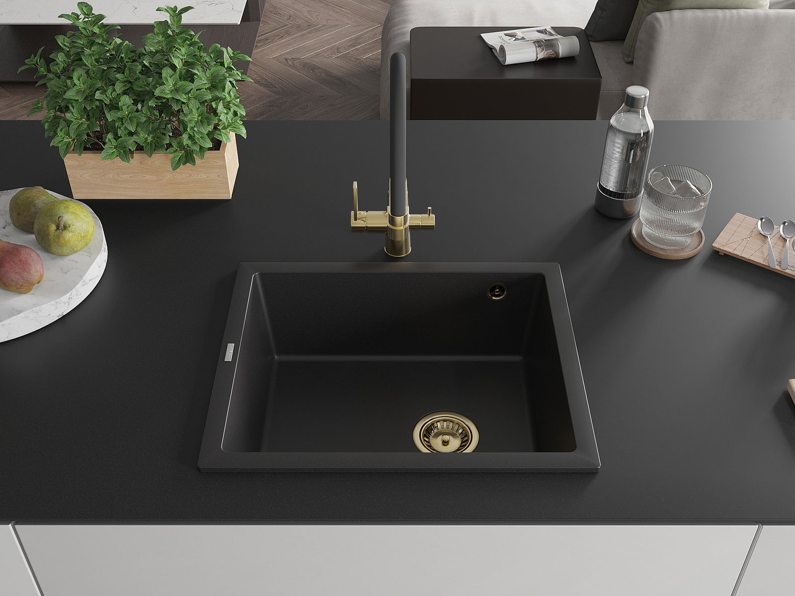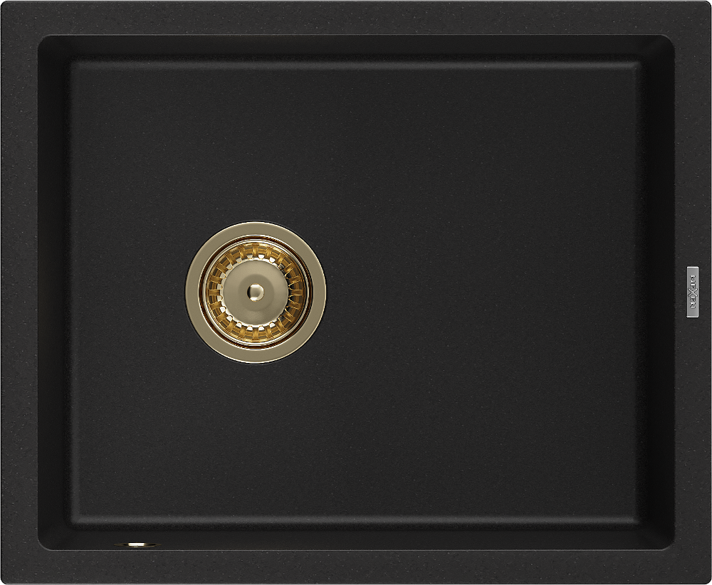 Mexen Pedro žulový drez 1-komorový 560 x 460 mm, čierny, sifón zlatý - 6508561000-77-G