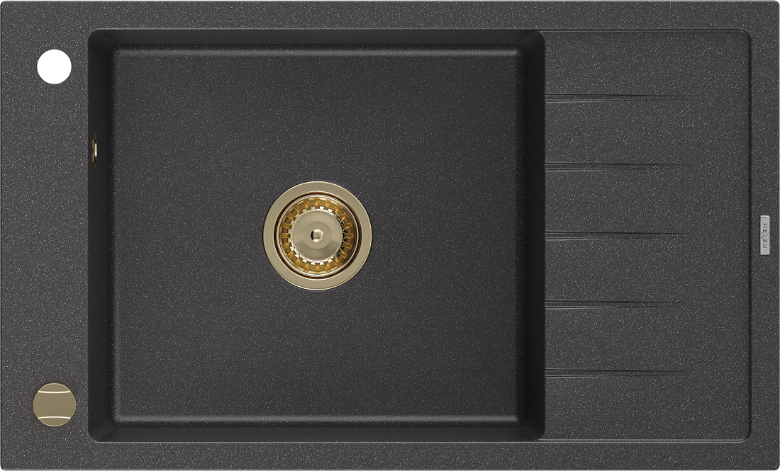 Mexen Elias žulový drez 1-komorový s odkvapkávačom 795 x 480 mm, čierny s bodkami, zlatý sifón - 6511791005-76-G