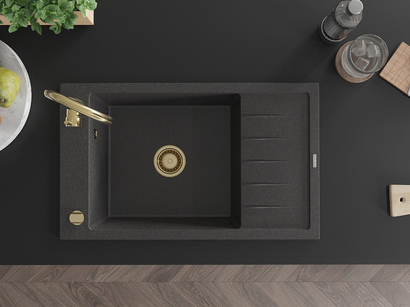 Povrch umývadla je odolný voči škvrnám a sfarbeniu, vďaka čomu sa ľahko čistí a zachováva si svoju farbu po dlhú dobu. Estetický a prakticky dopĺňajúci každú kuchyňu.