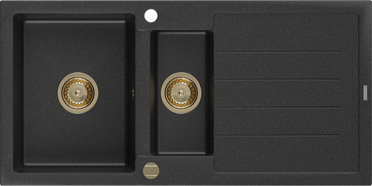 Mexen Andres granitozový drez 1,5-komorový s odkvapkávačom 1000 x 500 mm čierny/strieborný metalik, zlatý sifón