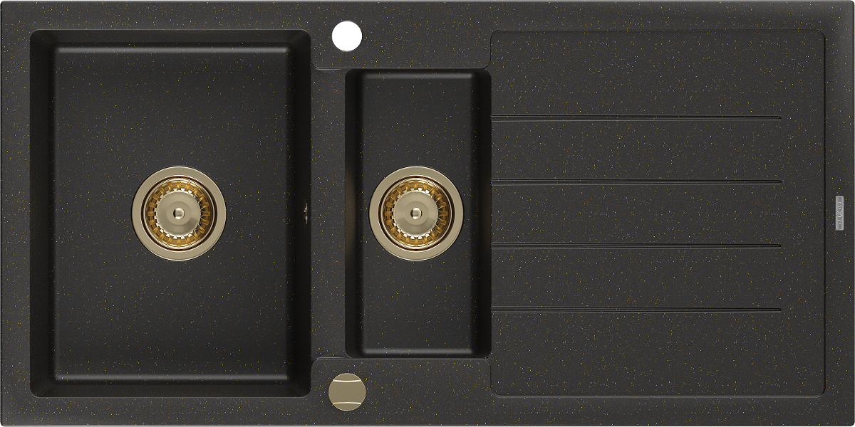 Mexen Andres granitový drez s odkvapkávačom, 1,5-komorový, 1000 x 500 mm, čierny/zlatý metalik, zlatý sifón - 6515101510-75-G