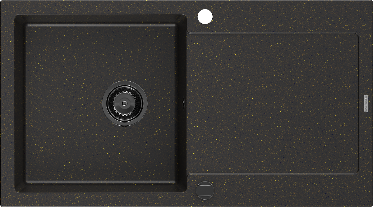 Mexen Leo granitový drez 1-komorový s odkvapkávačom 900 x 500 mm, čierny/zlatý metalik, čierny sifón - 6501901010-75-B