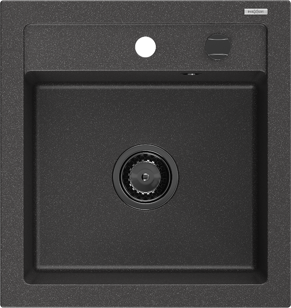 Mexen Vito žulový drez 1-komorový 520 x 490 mm, čierny škvrnitý, sifón čierny - 6503521000-76-B