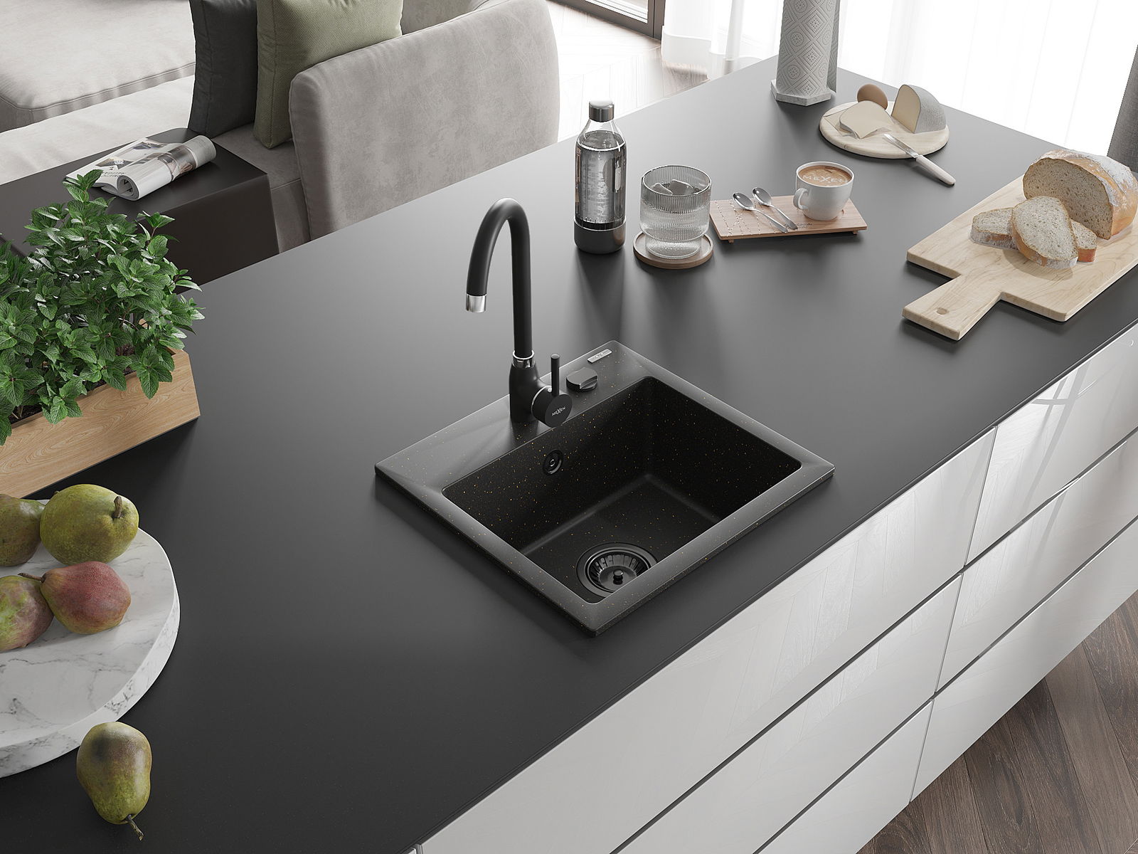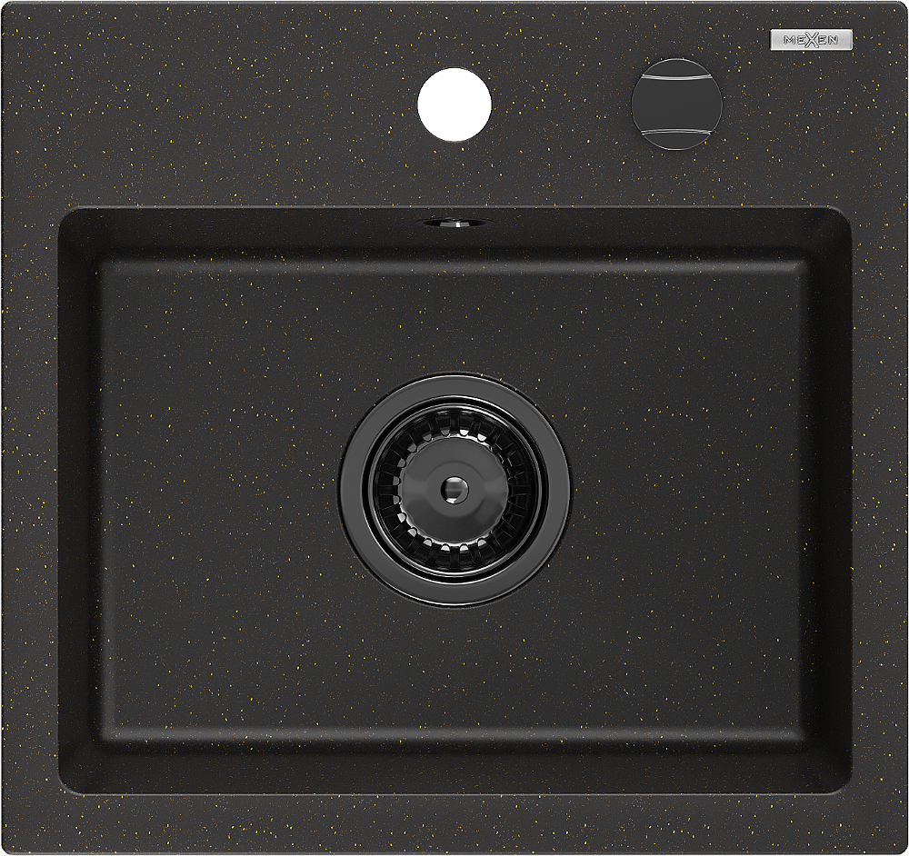 Mexen Milo žulový kuchynský drez s jednou komorou 435 x 410 mm, čierny/zlatý metalický, sifón čierny - 6505441000-75-B