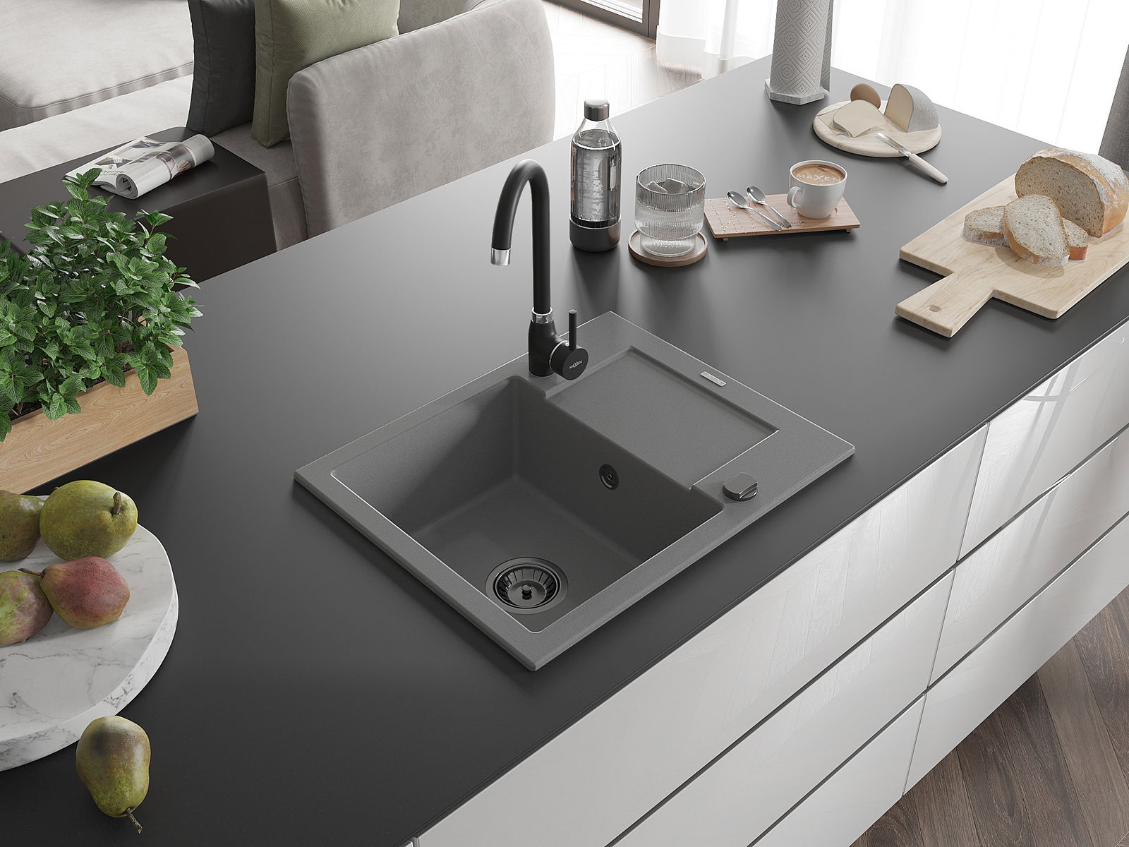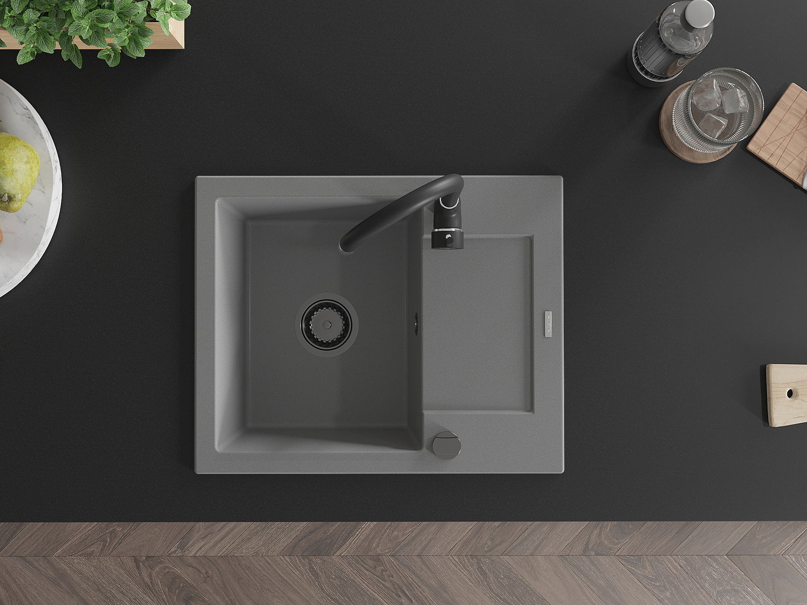 Povrch umývadla je odolný voči škvrnám a sfarbeniu, vďaka čomu sa ľahko čistí a zachováva si svoju farbu po dlhú dobu. Estetický a prakticky dopĺňajúci každú kuchyňu.