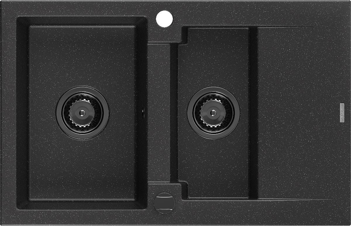 Mexen Gaspar granitový drez 1,5-komorový s odkvapkávačom 737 x 475 mm čierny/strieborný metalik, čierny sifón - 6507731505-73-B