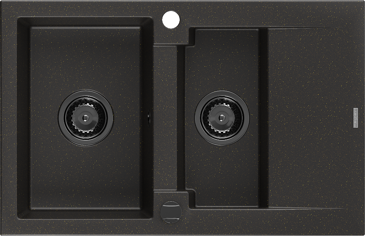 Mexen Gaspar žulový drez 1,5-komorový s odkvapkávačom 737 x 475 mm, čierny/zlatý metalik, čierny sifón - 6507731505-75-B