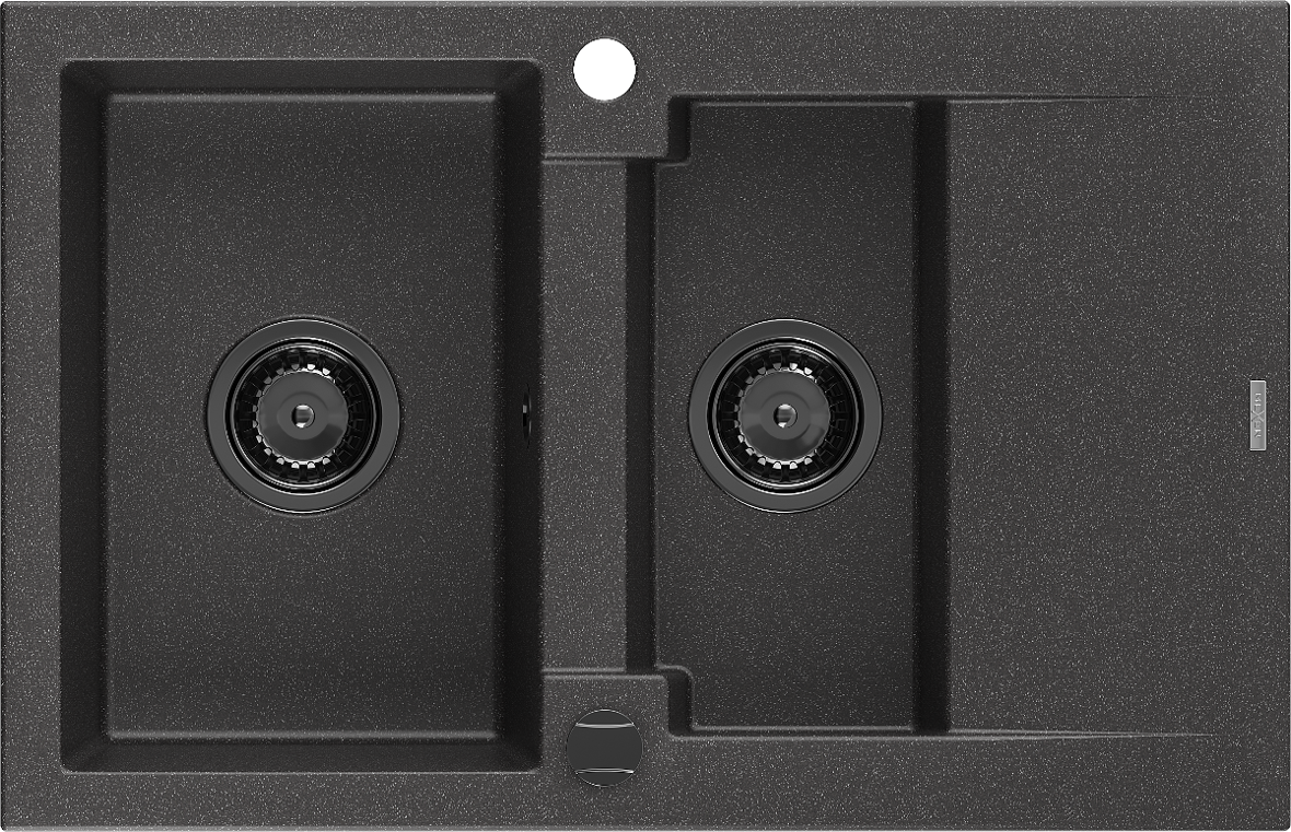 Mexen Gaspar granitový drez 1,5-komorový s odkvapkávačom 737 x 475 mm, čierny škvrnitý, čierny sifón - 6507731505-76-B