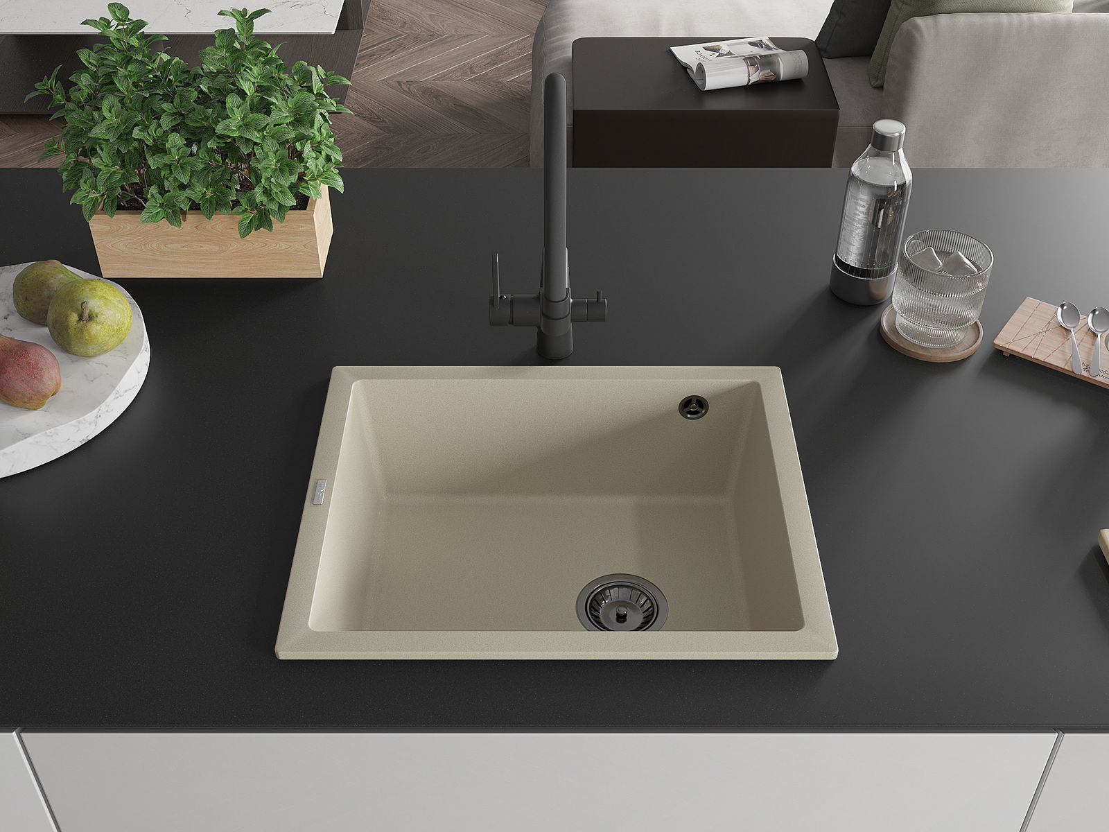 Povrch umývadla je odolný voči škvrnám a sfarbeniu, vďaka čomu sa ľahko čistí a zachováva si svoju farbu po dlhú dobu. Estetický a prakticky dopĺňajúci každú kuchyňu.