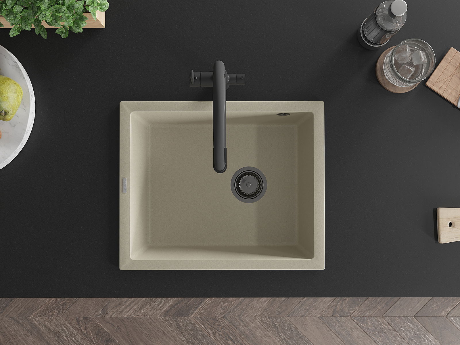 Mexen Pedro granitový drez 1-komorový 560 x 460 mm, béžový, sifón čierny - 6508561000-69-B