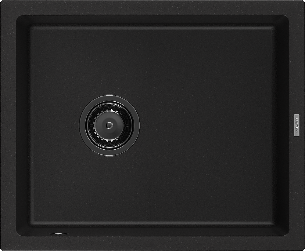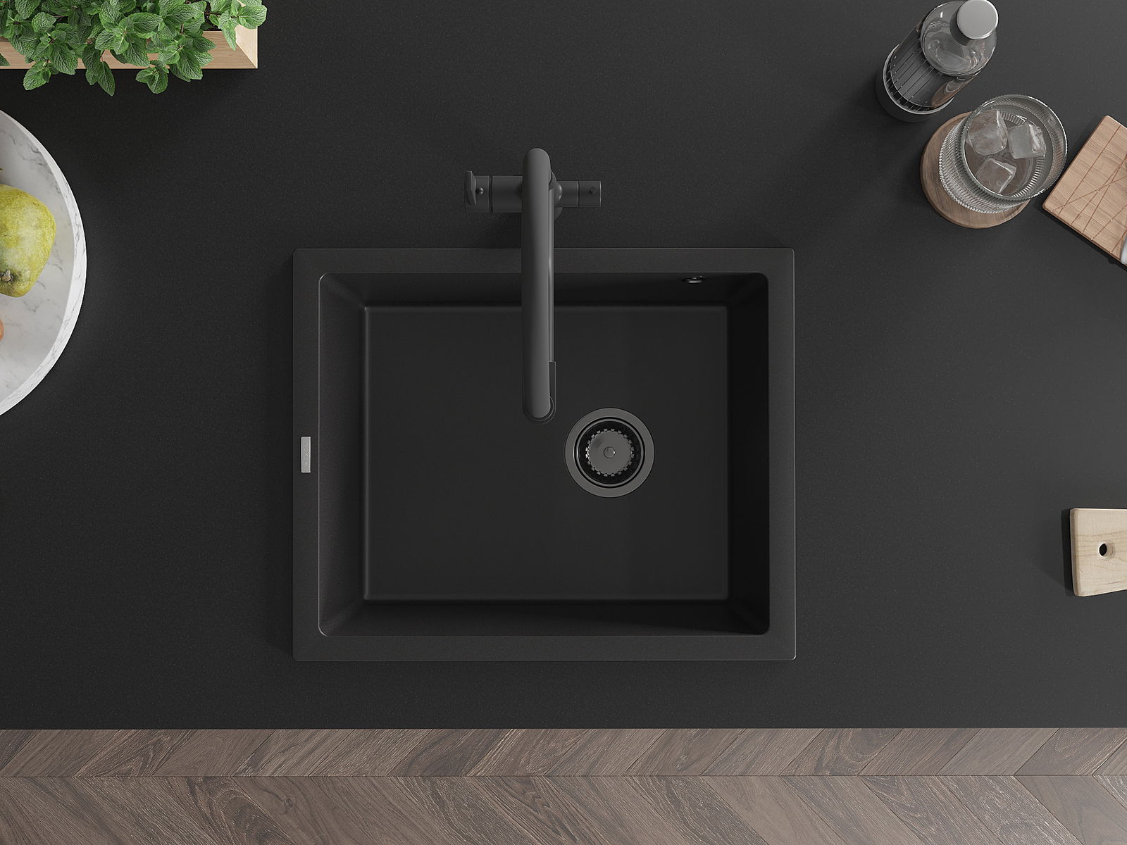 Mexen Pedro žulový kuchynský drez 1-komorový 560 x 460 mm, čierny, sifón čierny - 6508561000-77-B