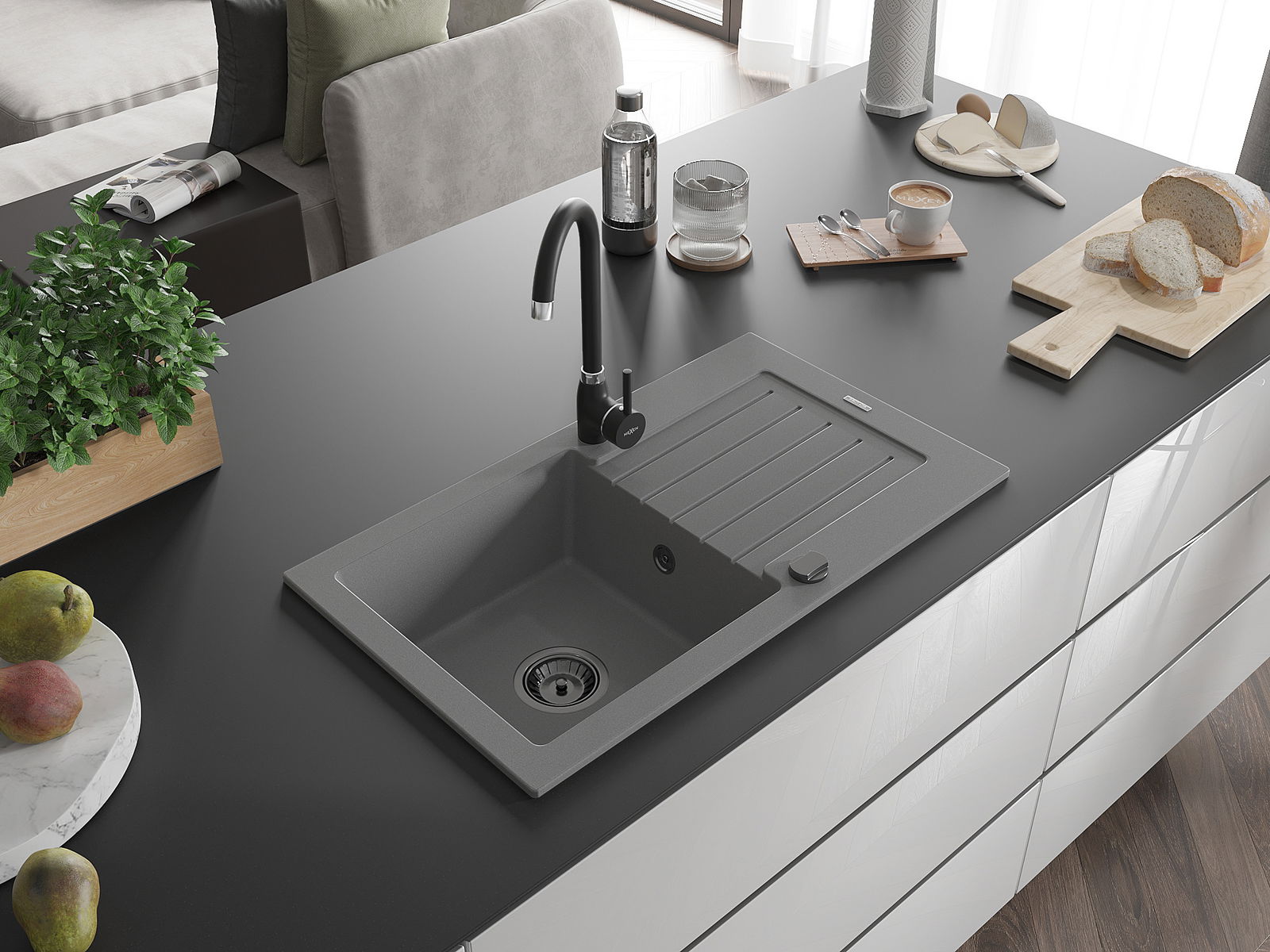 Povrch umývadla je odolný voči škvrnám a sfarbeniu, vďaka čomu sa ľahko čistí a zachováva si svoju farbu po dlhú dobu. Estetický a prakticky dopĺňajúci každú kuchyňu.