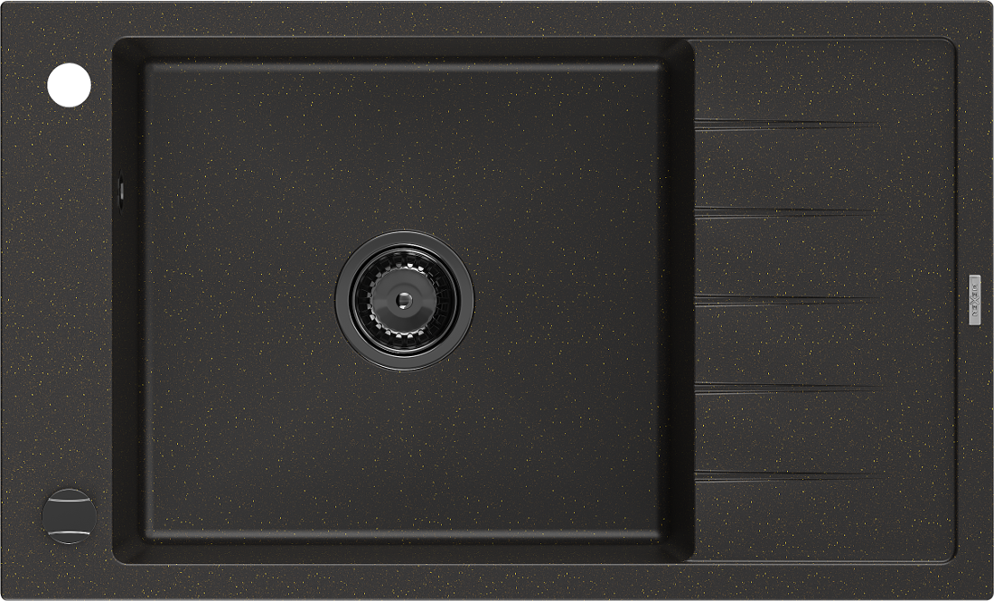 Mexen Elias granitový drez s 1 komorou a odkvapkávačom 795 x 480 mm, čierny/zlatý metalik, čierny sifón - 6511791005-75-B