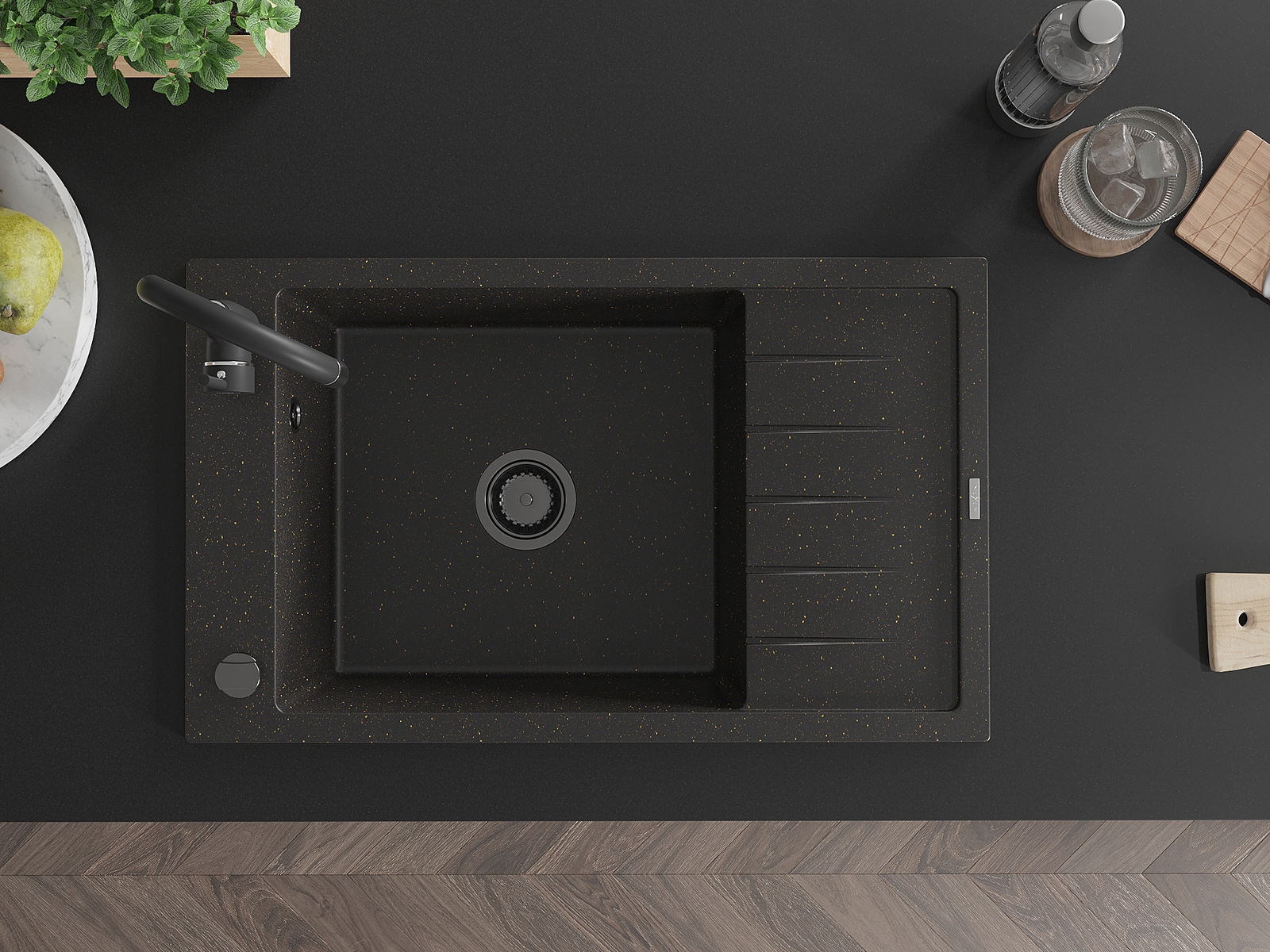 Povrch umývadla je odolný voči škvrnám a sfarbeniu, vďaka čomu sa ľahko čistí a zachováva si svoju farbu po dlhú dobu. Estetický a prakticky dopĺňajúci každú kuchyňu.