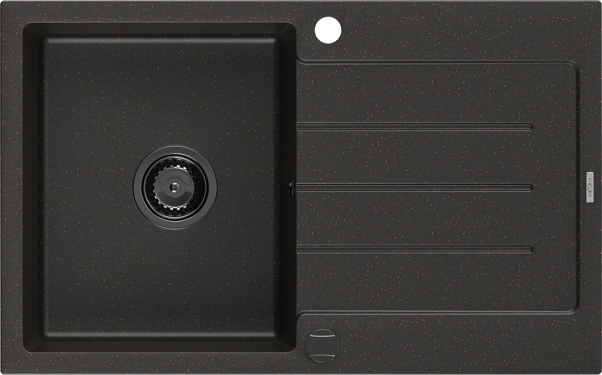Mexen Bruno žulový drez 1-komorový s odkvapkávačom 795 x 495 mm, čierna/zlatý metalik, čierny sifón - 6513791010-75-B
