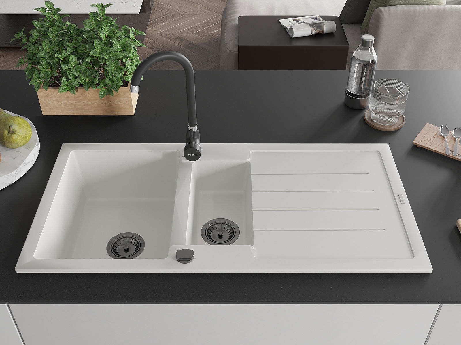 Povrch umývadla je odolný voči škvrnám a sfarbeniu, vďaka čomu sa ľahko čistí a zachováva si svoju farbu po dlhú dobu. Estetický a prakticky dopĺňajúci každú kuchyňu.