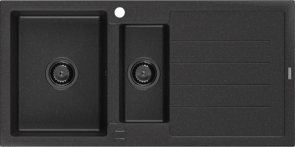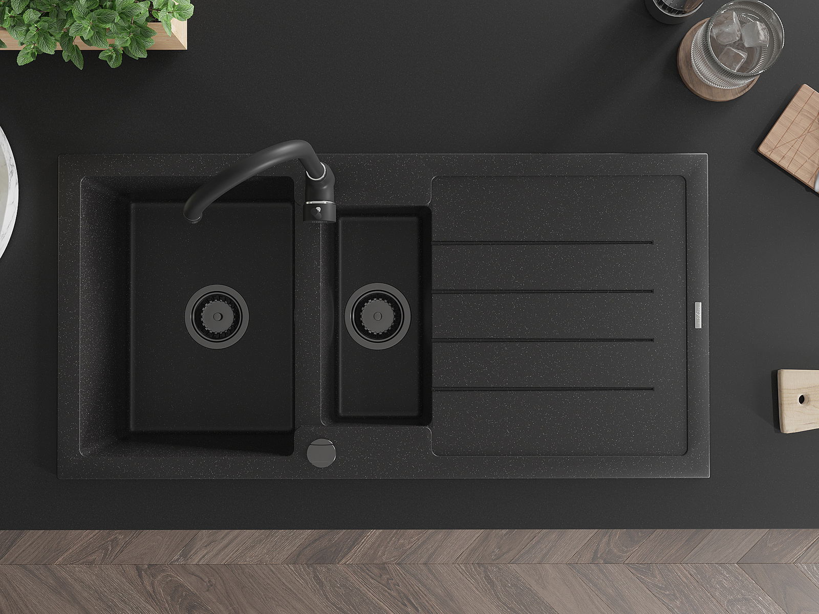 Mexen Andres žulový drez 1,5-komorový s odkvapkávačom 1000 x 500 mm čierny/strieborný metalik sifón čierny - 6515101510-73-B
