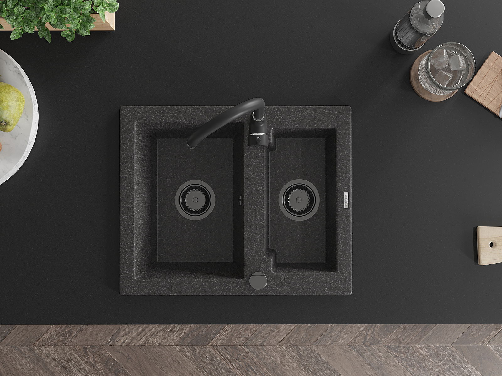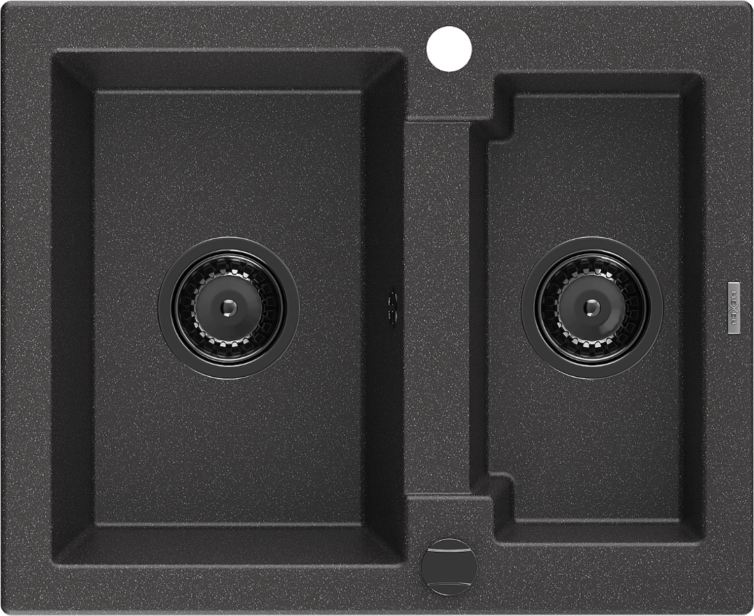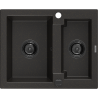 Mexen Carlos granitový drez 1,5-komorový 582 x 475 mm, čierno škvrnitý, čierny sifón - 6518581500-76-B