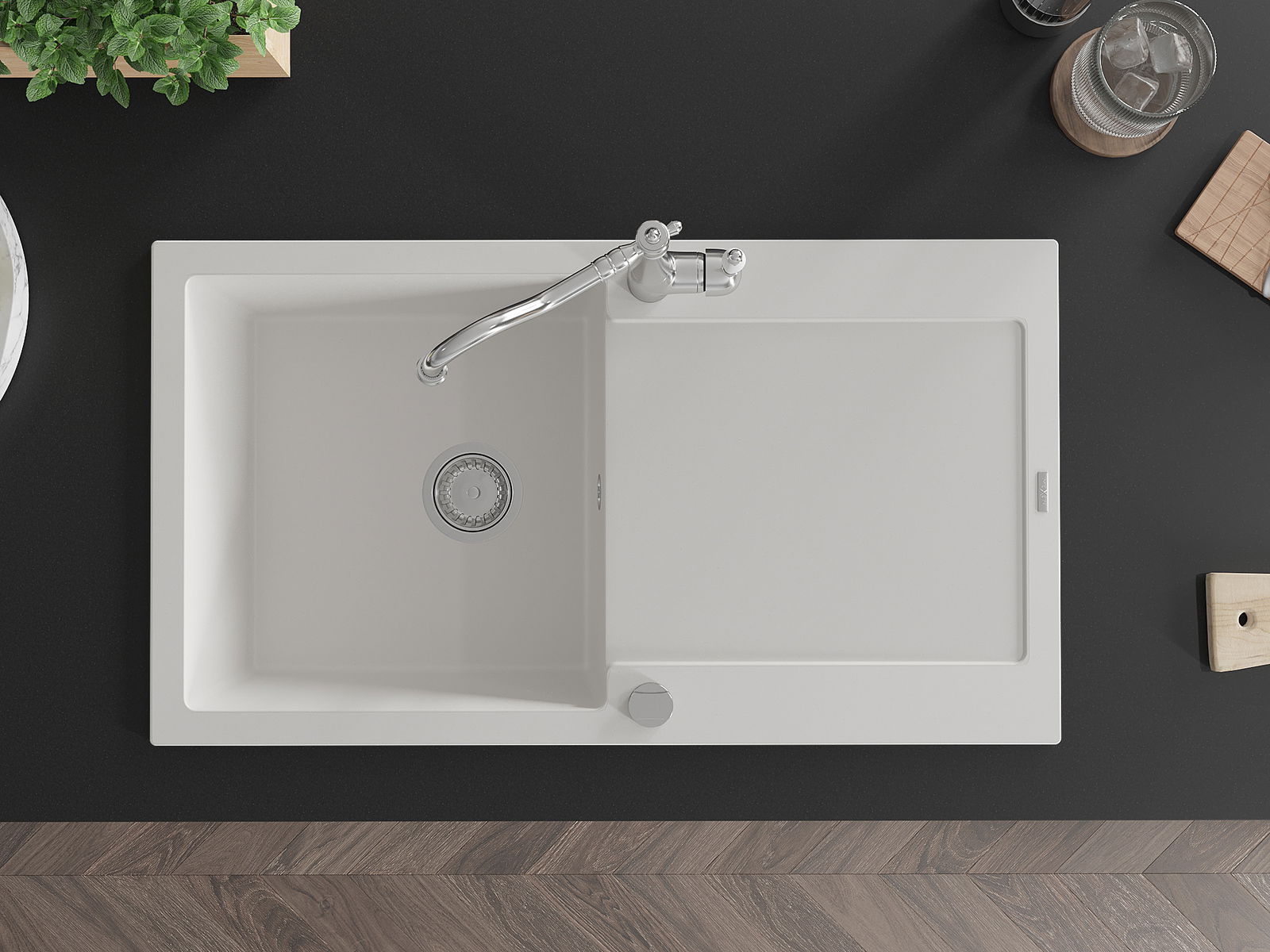 Povrch umývadla je odolný voči škvrnám a sfarbeniu, vďaka čomu sa ľahko čistí a zachováva si svoju farbu po dlhú dobu. Estetický a prakticky dopĺňajúci každú kuchyňu.