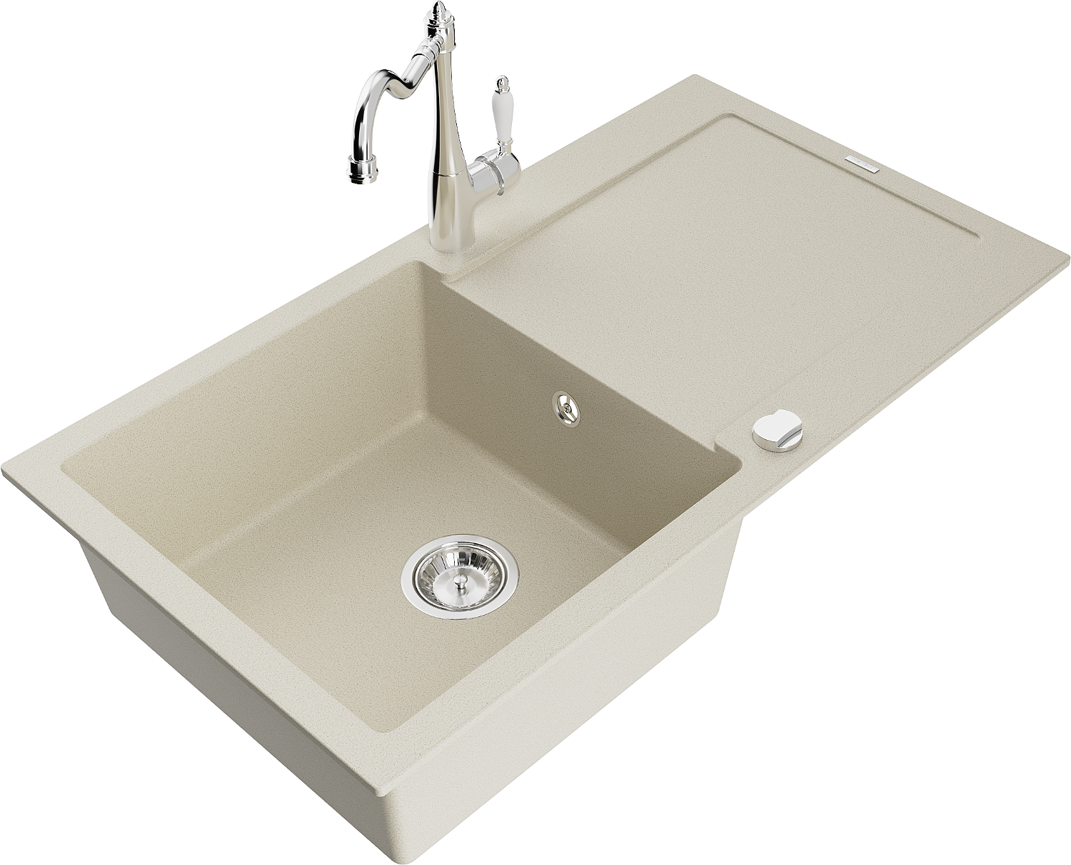 Mexen Leo žulový kuchynský drez 1-komorový s odkvapkávačom a kuchynskou batériou Carla, béžový - 6501-69-670700-00