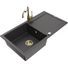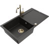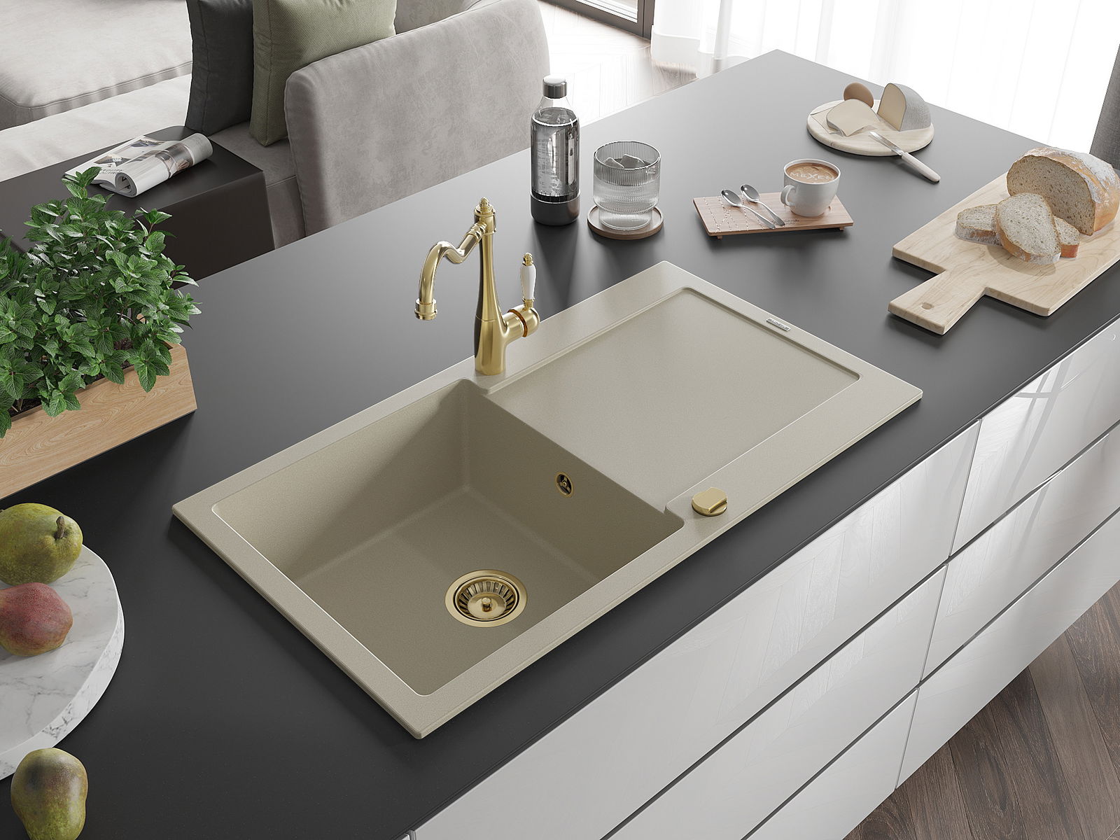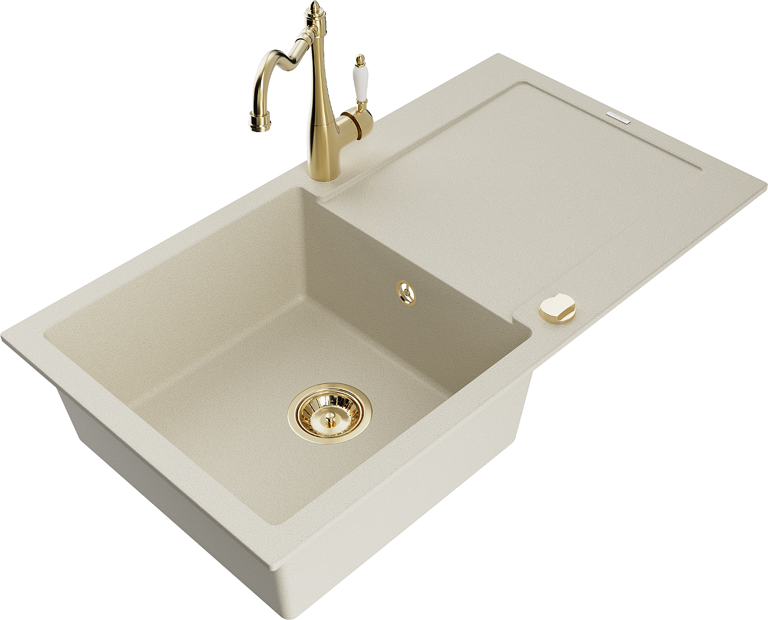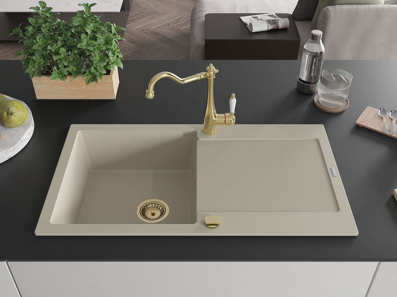 Mexen Leo kuchynský drez 1-komorový s odkvapkávačom a kuchynskou batériou Carla, béžový - 6501-69-670700-50
