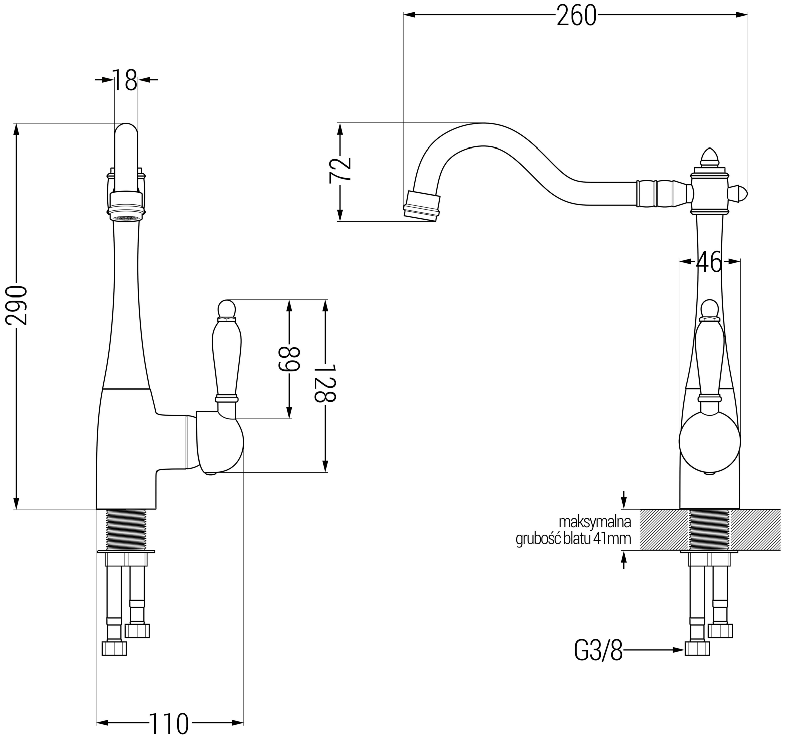 Drez má 2 predfrézované otvory s priemerom 35 mm, ktoré si môžete vlastnoručne vyraziť. Môžete ich využiť napríklad na montáž dávkovača na tekutinu, ktorý eliminuje prítomnosť plastových fliaš v kuchyni a dodá jej elegantný vzhľad.